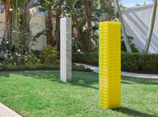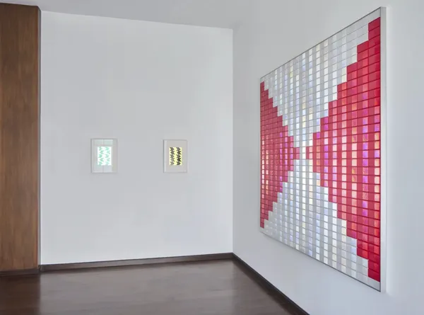 Begum is influenced by the geometric abstraction of minimalism and constructivism and the work of artists such as Agnes Martin, Donald Judd, Tess Jaray, Josef and Anni Albers. She works with industrial materials, such as stainless steel, aluminium, copper, brass, glass and wood to make sculptures and reliefs that explore geometry, colour and light. Light reflects and absorbs on fluorescent coloured surfaces to create changing sensations as viewers move in and around her works and the space they occupy. She is inspired by urban architecture and her childhood memories of the geometric patterns of traditional Islamic art and architecture.
