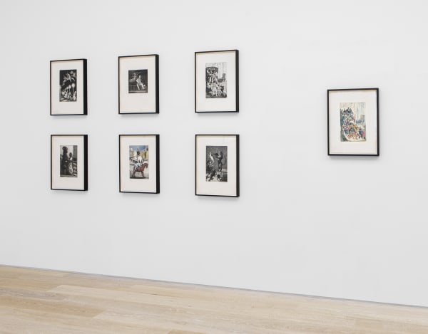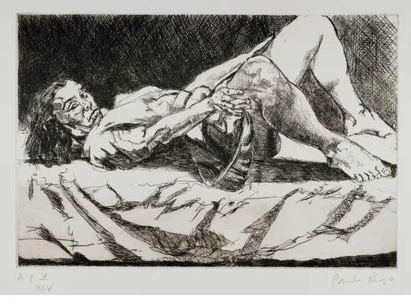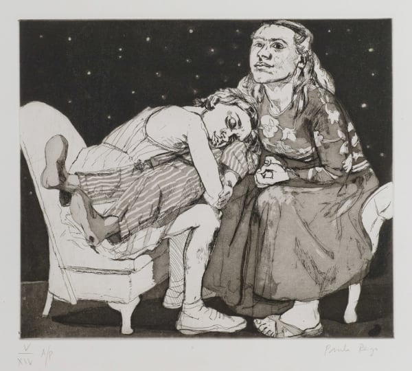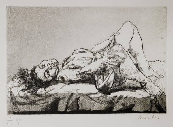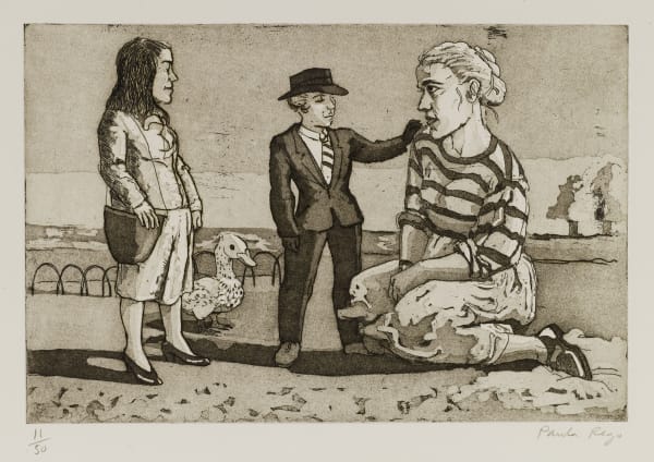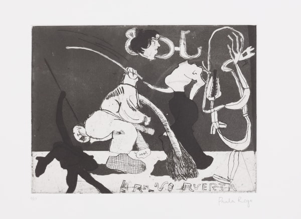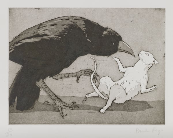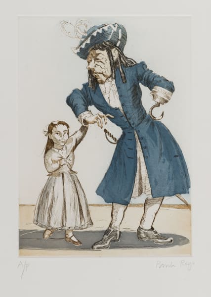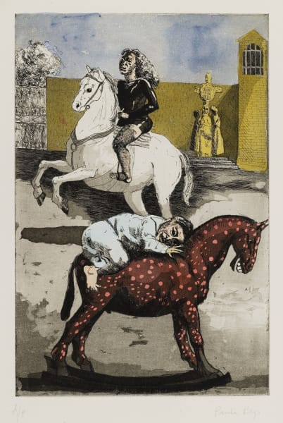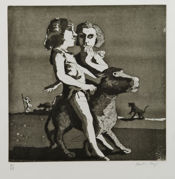 Rego made her first prints, experimenting with etching in the 1950s, at the Slade School of Art. In the 1980s she began to focus more closely on the medium and has since produced a profound body of work as a printmaker, including her coveted series The Nursery Rhymes, 1989, a group of over 30 etchings that are housed in major museum collections all over the world. From 1991 to 1996 the Arts Council of England and the British Council toured this body of work to venues in the UK, USA, Spain, Portugal and Asia. Her prints not only possess the extraordinary imaginative power of her paintings, but reflect the innovative possibilities of the medium through her experimentation with etching, lithography and aquatint, often employing hand-colouring in the process.