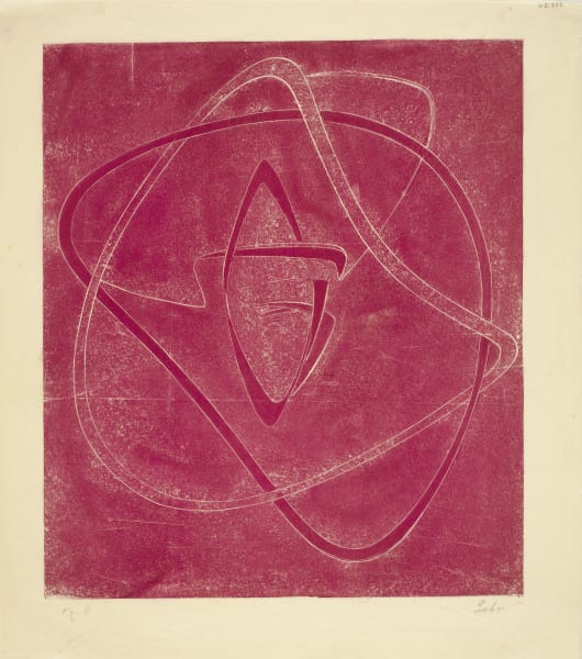 Perhaps best known for his three-dimensional constructions, Gabo was always resistant to the idea of the traditional 'editioned print', instead choosing to make a significant body of unique woodcuts over an extended period of time. He made the first of these monoprints in 1950 at the suggestion of William Ivins, formerly curator of prints at the Metropolitan Museum, New York, and continued the practice for the rest of his life.