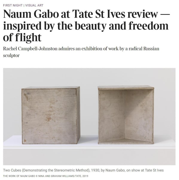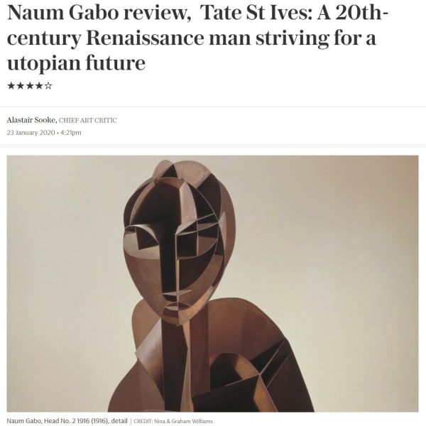 Gabo's life and work was recently celebrated in a major retrospective at Tate St Ives, Cornwall (2020), the largest exhibition dedicated to his work in the UK to date.
