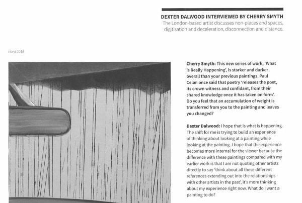 In 2017 Dalwood undertook a residency in Oaxaca, Mexico, making a body of work that featured in a solo exhibition that travelled to Centro de las Artes San Agustín, Oaxaca (2022) and Museo Nacional de Arte (MUNAL), Mexico City (2021). Other solo exhibitions include Lisson Gallery, London (2024); Simon Lee Gallery, Hong Kong (2021, 2016); Simon Lee Gallery, London (2019, 2014); Galerie Hubert Winter, Vienna (2017); Centre Pasqu’Art, Biel, Switzerland (2013); David Risley Gallery, Copenhagen (2012); Nolan Judin Gallery, Berlin (2011); and a major retrospective at FRAC Champagne-Ardennes, CAC Malaga and Tate St Ives, for which Dalwood was nominated for the Turner Prize in 2010.