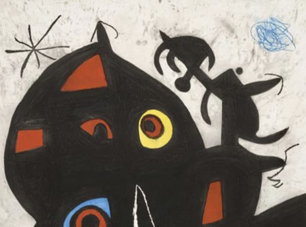 In 1929 Miró began experimenting with lithography and by 1933 made his first etchings. He described his printmaking as engraving the plate with a needle in an automatic way, without any sort of control. Miro went on to develop his own distinctive lyrical style, winning the Grand Prize for Graphic Work at the Venice Biennale in 1954. A major breakthrough for his graphic work came when he was introduced to the carborundum printmaking process in 1967. Miró found that by combining this new technique with other etching methods, especially aquatint, he could invent 'images to rival any painting'. The importance of his carborundum prints, made between 1967 and 1969, was recognised by the Museum of Modern Art, New York, in 1970 with a dedicated exhibition that toured to several US venues. Printmaking was an integral part of Miró's practice; he devoted himself primarily to the medium in the final decade of his life.