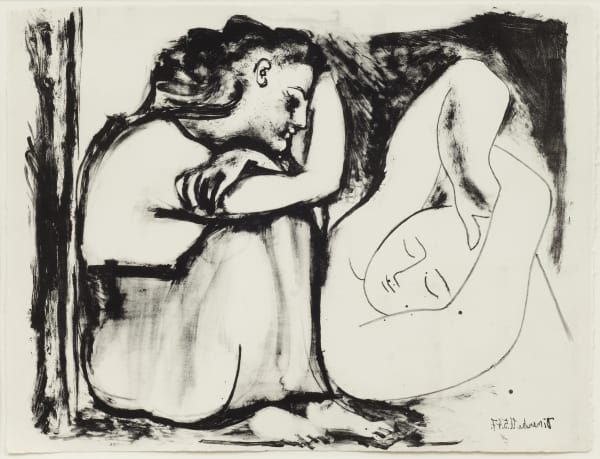 Lithography was the medium of choice for Picasso when he was based in Paris immediately after the Second World War. The close relationship which he developed with the printer Fernand Mourlot engendered a creative discourse unlike any seen before and led to works of immense skill and quality. Lithography also allowed Picasso to indulge in his fascination for developing images through a multitude of stages, as seen in Deux Femmes Nues variations.