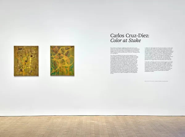 He had his first solo show in Caracas in 1947. In 1965 he participated in the group show The Responsive Eye at the Museum of Modern Art, New York; the exhibition drew worldwide attention to the 'Op Art' movement. Five years later in 1970 Cruz-Diez represented Venezuela at the Venice Biennale, installing several large-scale works in the pavilion including Chromosaturation, 1965/1970 , an immersive, participatory artwork of three empty rooms illuminated in red, blue and green.