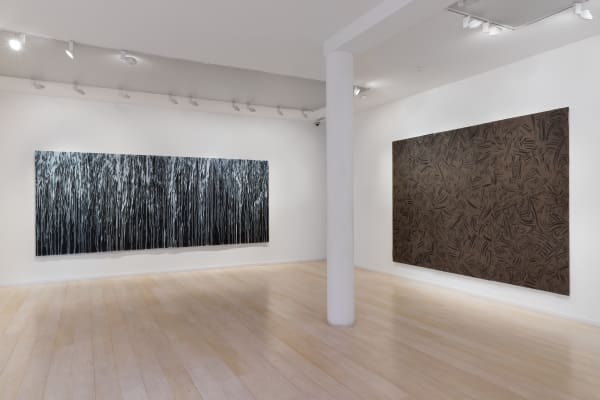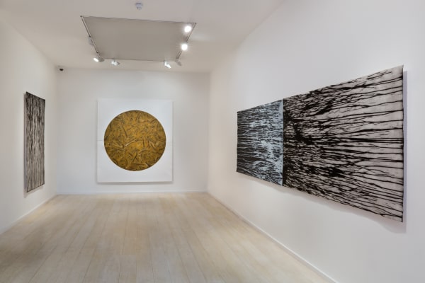 Over four decades of printmaking Long has mostly worked with silkscreen and offset printing, alongside etching and lithography. Long was approached by the gallery in 2013 with the idea of making carborundum relief prints, as this would give him the opportunity to work directly with his hand on the plate, thus replicating the technique he uses when making his mud works.