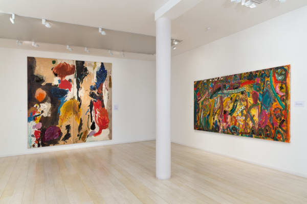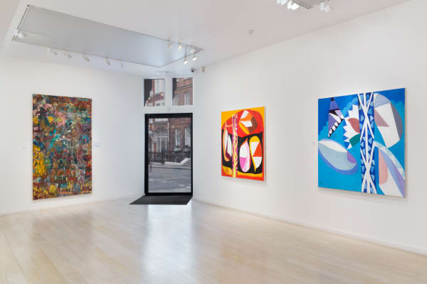 Displayed in the gallery space in 34 Cork Street will be four large scale paintings by Ayres spanning 1959 - 1997. The group includes Cumuli, undoubtedly one of her most important paintings, and the one which, as the centrepiece of the Art Council's 1960 seminal exhibition, Situation, established Ayres' reputation. These four paintings trace the evolution of Ayres' style and accomplishments as a painter over the first 40 years of her career. Progressing from the early use of oil and ripolin thrown and poured onto wooden panels towards her recent use of thick applied oil paint to create clear and defined edges and shapes, these works demonstrate how Ayres has always forged her own path in a completely original way. These works have never been offered for sale before.
