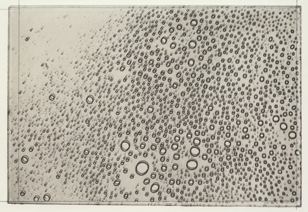 Some of the prints by Parker are made up of layers of blots and spatters, created by her spitting a mouthful (shot) of tequila directly on to a prepared plate. Creating a kind of 'action painting', she cross-pollinates the gestures of abstract expressionist techniques with punk. The resulting photogravure freezes a moment in time, and the once repellent act of spitting produces abstract forms that are both compelling and beautiful.