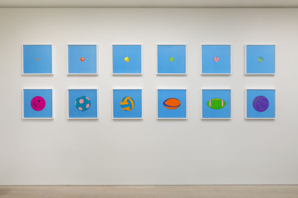 We will exhibit works by Julian Opie (b. 1958) from his recent series New York Couples 1-8., 2019. Working in a variety of media, Opie draws inspiration from both high art, design and the vernacular; from lightbox advertising and billboard signs to nineteenth-century silhouettes and ancient Egyptian art. Using screenprinting and collage, New York Couples depict Opie’s signature walking figures. Twelve new screenprints by Michael Craig-Martin (b.1941), in a vibrant palette, include a golf ball, tennis ball, cricket ball, baseball, football and a basketball. Entitled Sports Balls, the set is presented in a portfolio box designed by the artist.