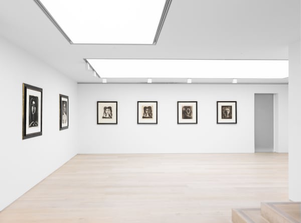 Gilot, with whom Picasso had a relationship for ten years, is a dominant theme in the artist’s works in the late 1940s. Around this time Picasso also began working with the lithographic printer, Fernand Mourlot, in Paris. Lithography, first made on limestone and subsequently on copper plates, enabled Picasso to draw rapidly and expressively at any time of day or night. Tête de Jeune Fille (States I-IV), 1947 demonstrates his evolving creative process in a joyous ode to Gilot’s beauty.
