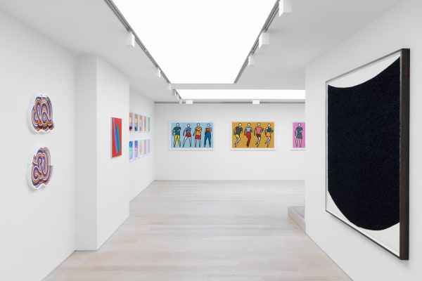 For a new series of screenprints, Julian Opie continues his investigation of technology and the phenomena of ‘going viral’ on social media. Dance Synced., 2024 depict several dancing figures rendered in bright colour, based on real dances popularised on TikTok and YouTube.